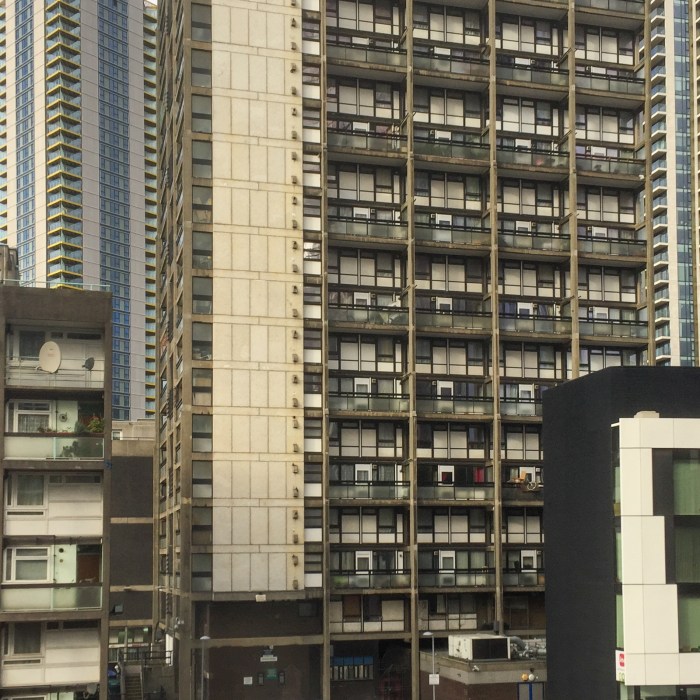 By contrast, in “Tokyo, 2017”, displayed both inside and outside the gallery (above), I found a serendipity connection with photos that I had made on way into London on the train that morning. I had realized that the view from the train track was a different set of data of what peoples’ lives look like – the backs of their houses, the back yards of their businesses – a more private, slightly voyeuristic, view, rather than the more tidy and restrained one you get from the normally seen street view of the “front of the house” view of their lives, whether personal or commercial (see my image below).