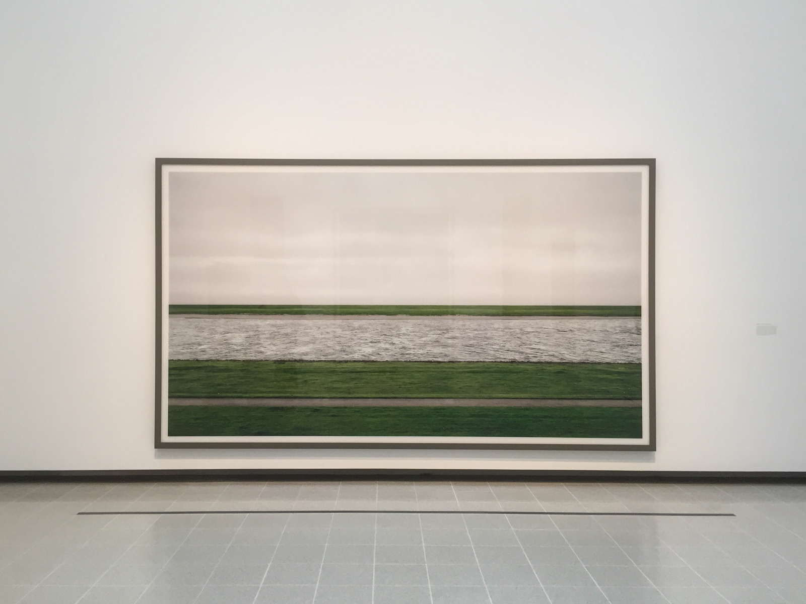 My response to “Rhine II” (see image at the top of this article) was less a rationalization than an acceptance that the deliberate removal of detail had created something that at the same time engaged me thinking about the essence of the landscape, but also gives an increased awareness of what we do to the landscape when we install all our activity and industry and wealth extraction mechanisms on it. The photographic material technical and editorial fictionalizing enables the contemplation of the essence of what was there first. I think that this is what Gursky may mean when he says: “I am interested in the ideal typical approximation of everyday phenomena – in creating the essence of reality.” Imagining what has been taken out in looking at an image, for instance Rhine II, helped think about what has been left in the image means, represents and allowing myself a subjective response to that and what it feels like. I found that I could look at this image for a long time.
